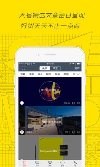3、将各种高端的设计项目进行汇总,设计师也能上传自己的作品,让更多人发现你的才华;