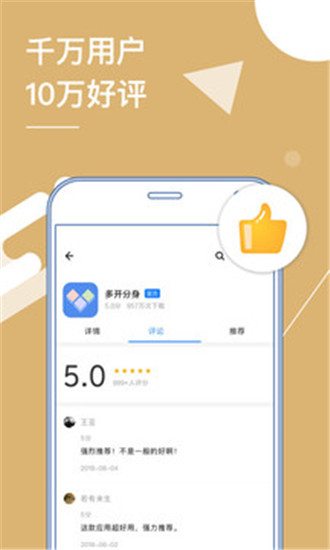 多开分身免费版是一款只能安卓用户使用的非常棒的软件,毕竟苹果系统不支持这种。在多开分身免费版中,你再也不用担心有两个微信号却需要两个手机或者每次换号都很麻烦了,但是它可是让你同时开两个微信哦,或者多个微信呢。不仅仅是微信,如果你喜欢玩游戏,你还可以双开或者开多个游戏,再也不怕玩多个号需要一个个退出登陆切换的麻烦了。多开分身免费版支持一切应用和游戏,采用虚拟技术,等于复制了手机,所以也不用担心数据泄露。现在多开分身免费版已经是全部免费,快来下载吧。