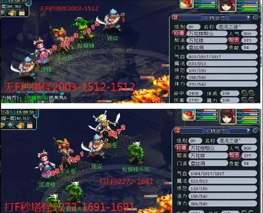 3、盘丝适合玩109级以下或者渡劫单盘丝组合。就129级盘丝不强,因为129的女儿地府秒7,双固伤加成比较划算。渡劫单盘丝第6丹会提升网子40%伤害,大佬能秒3个5 6千,适合收尾。所以109以下盘丝基本是中低端,中高端固伤的大哥。极限的89普陀肯定比不过他,因为89级的极限普陀在89是扛把子。