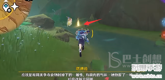 4、利用四叶印移动,找到第三个闪光点之后向上移动,然后跟随任务指引移动。
