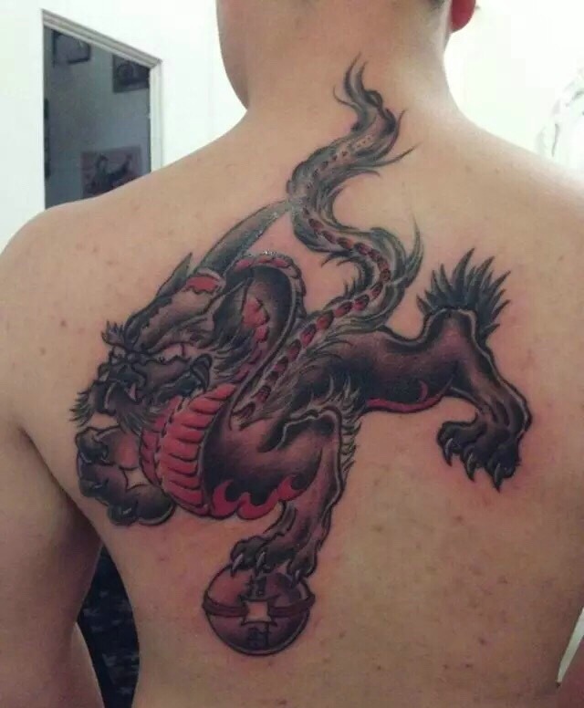 一款满背红貔貅刺青图案霸气十足图片