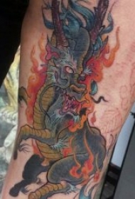 手臂大气的火麒麟纹身图片