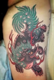 大腿超帅前卫的麒麟纹身图片