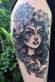 手臂曼陀罗花朵骷髅骨纹身图片