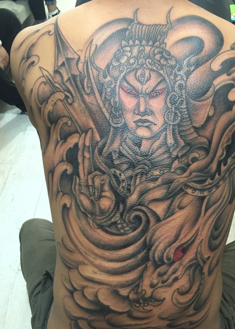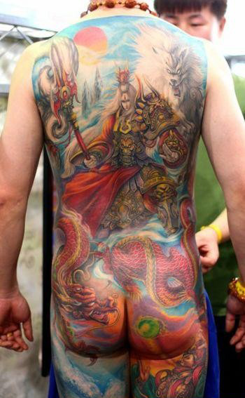 多角度满背二郎神纹身实拍图片