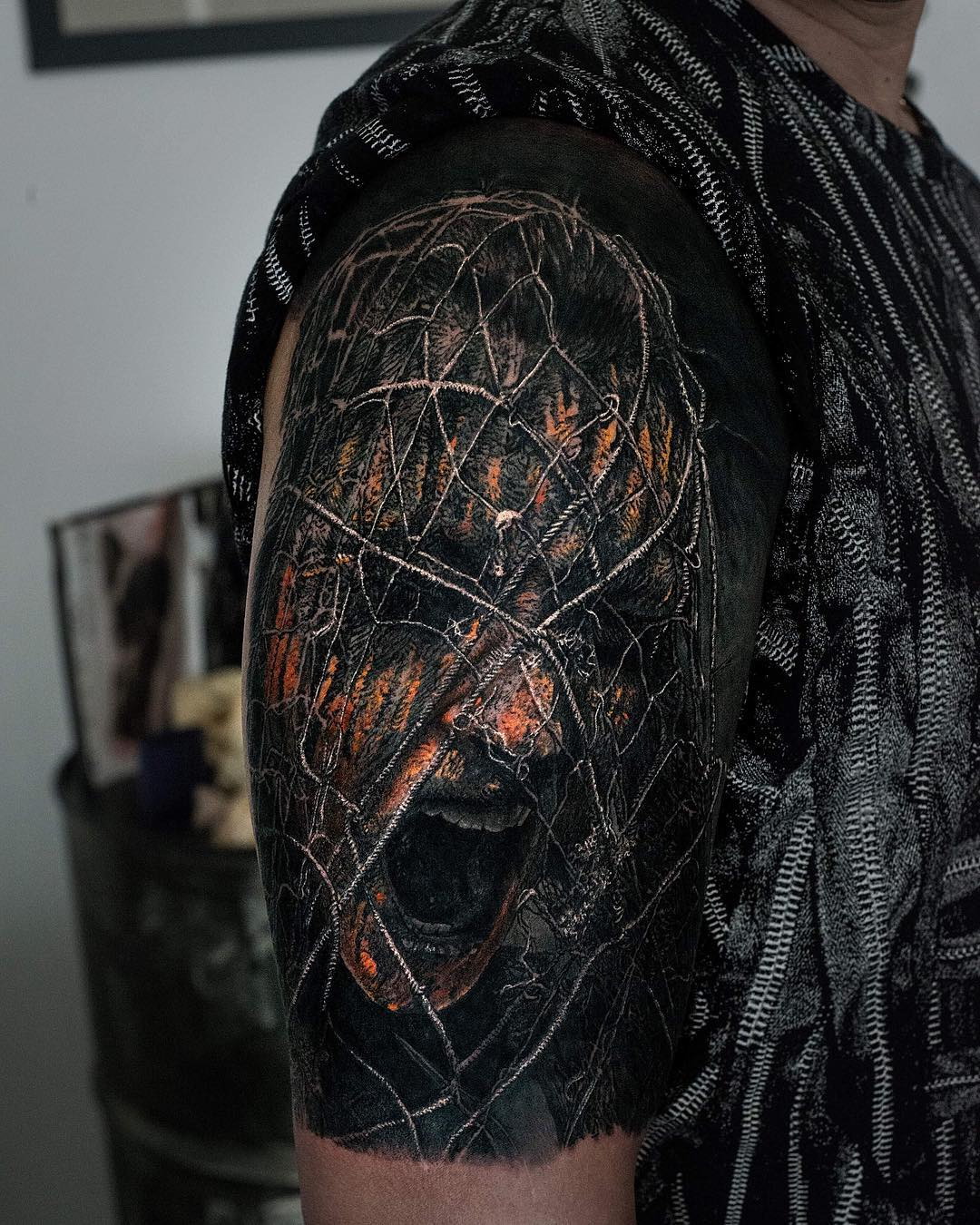 骷髅老手纹身师Sandry Riffard的另类阴森恐怖破网人物纹身图案