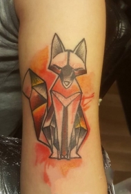 男生手臂上彩绘渐变抽象线条可爱小动物狐狸纹身图案