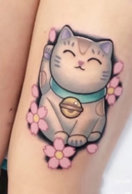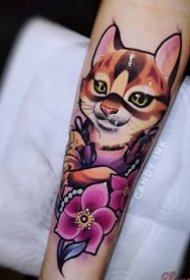 小清新猫咪刺青 多款彩绘刺青动物小清新猫咪纹身图片