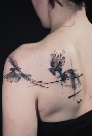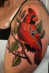 鸟语花香,披肩鲜花小鸟个性刺青图片