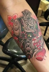 男生手臂上彩绘几何抽象线条锤子工具纹身图案