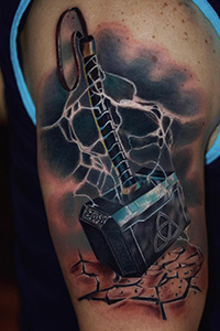 雷神托尔的武器--姆乔尔尼尔即雷神之锤写实纹身图案