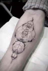 小臂上很好看的点线几何设计纹身图片