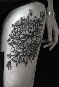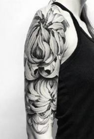 黑灰菊花:手臂和腿部上好看的黑灰菊花纹身图片