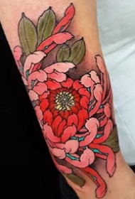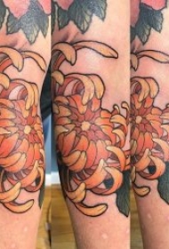 日式菊花刺青 男生手臂上日式菊花纹身图案