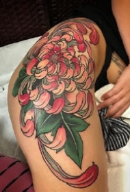 菊花刺青图案 多款彩绘刺青植物的菊花纹身图片
