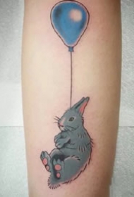 女生小腿上彩绘渐变简单线条卡通气球和小动物松鼠 纹身图案