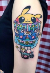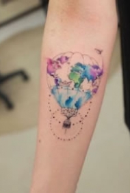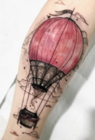 空中的梦幻旅程,手臂清新画风的热气球彩绘刺青图片