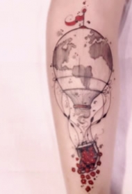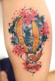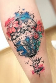 飞向心中之梦,小腿热气球彩绘刺青图片