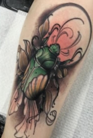 New School大臂甲虫花卉纹身图片