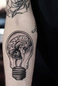 写实风格的彩色骷髅与灯泡手臂纹身图片