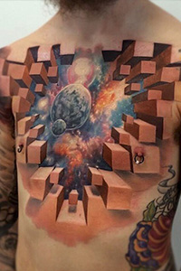 美国纹身师Jesse Rix的3D立体胸部纹身胸花刺青作品集