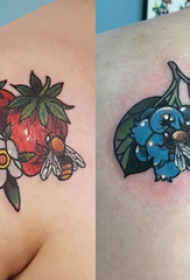 后肩刺青 女生后肩上植物和蜜蜂纹身图案