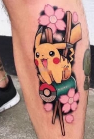 卡通大腿神奇宝贝皮卡丘纹身图片