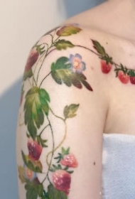 吴娴肩部小清新粉色草莓刺青图片