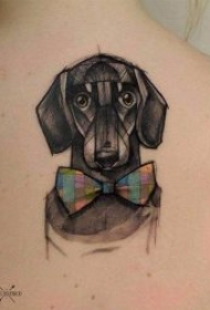 肩胛骨上的小狗纹身图片