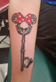 钥匙刺青图案 女生手臂上蝴蝶结和钥匙纹身图案