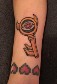 钥匙刺青图案 男生手臂上彩色的钥匙纹身图案