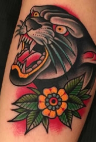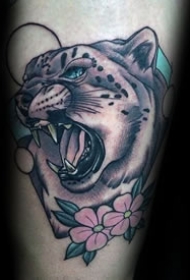 豹子头刺青 男生大臂上彩绘的豹子头纹身图案