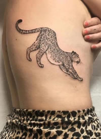 豹子刺青 黑灰色的一组写实小豹子纹身图片