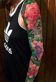 国色天香,手臂水墨牡丹花彩绘刺青图片