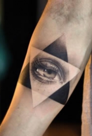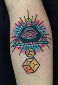 手臂彩色的眼睛和三角形线条纹身图片