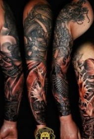 日式班诺刺青 男性手臂上日式班诺刺青龙头刺青半甲图案大全图片图片