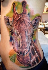 长颈鹿刺青图案 女生背部长颈鹿纹身图片