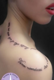 贝嫂维多利亚脊椎骨上的文字纹身图案