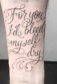 9张胳膊上很有个性的黑色英文花体字纹身图片