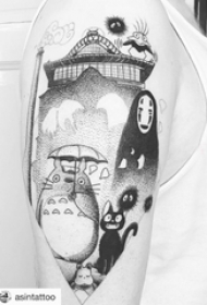 刺青卡通 男生大臂上黑色的龙猫纹身图案