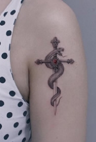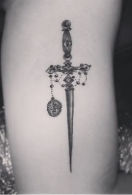 小剑刺青 黑灰色的一组9张小剑纹身图片