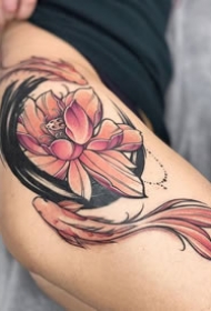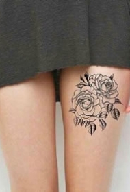 女性大腿上的性感一组繁花刺青图案9张图片
