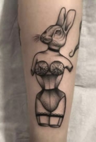 小兔子刺青:黑灰色的9张小兔子刺青作品9张图片