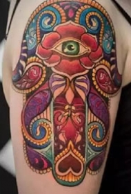 符号刺青-法蒂玛幸运之手保佑平安祈求健康的纹身图案