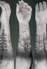 环绕在手臂上的森林树木等臂环手环纹身图片