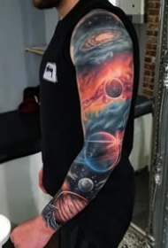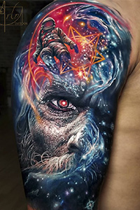 绚丽的彩绘几何抽象线条宇宙星空元素星球纹身图片