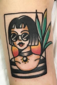 oldschool小女孩刺青:oldschool风格的一组小菇娘女孩纹身图片