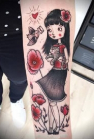 很可爱的卡通小女孩萌萌哒刺青图案9张图片