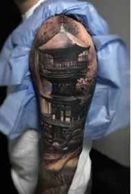 古塔刺青--9张中国风古代塔楼建筑刺青图案作品图片