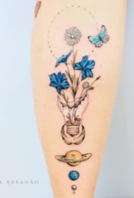 胳膊上小清新风格的小花卉刺青图片9张图片